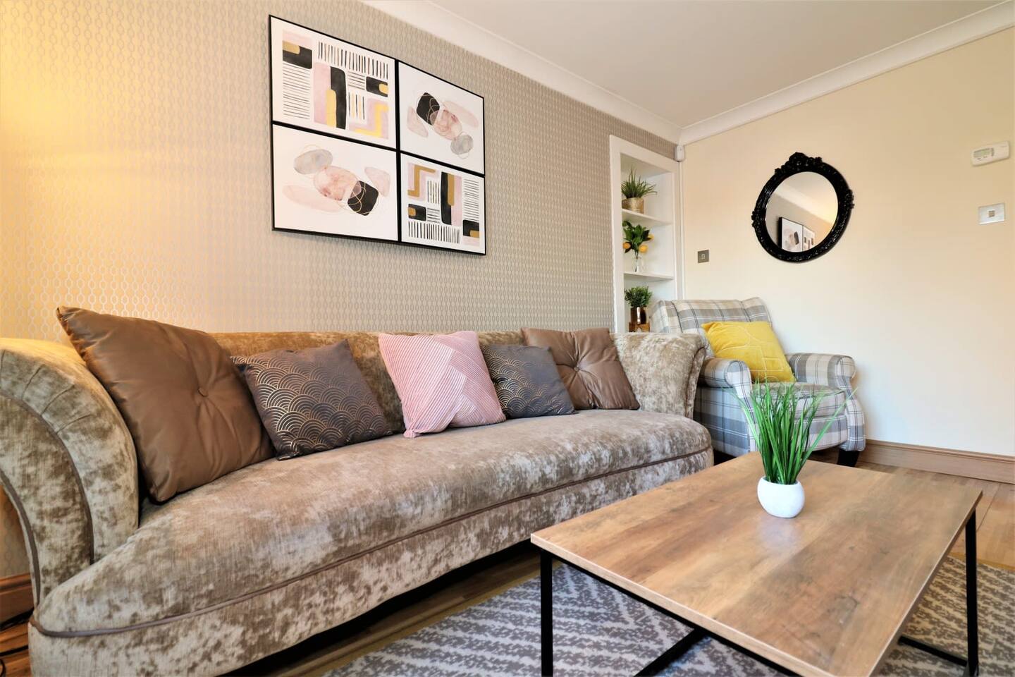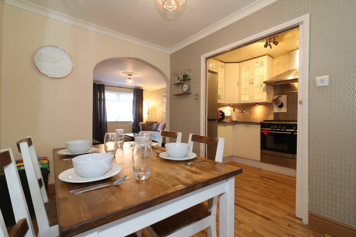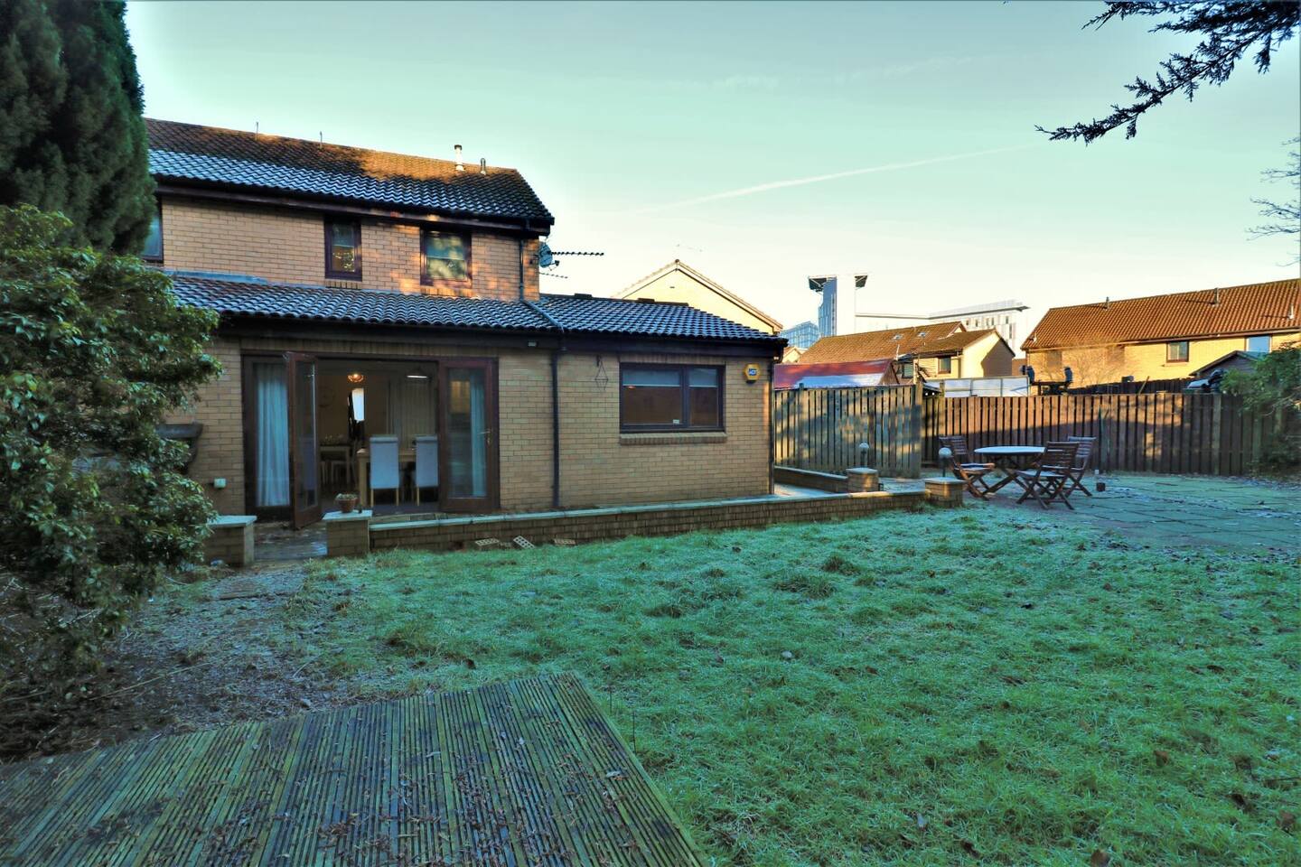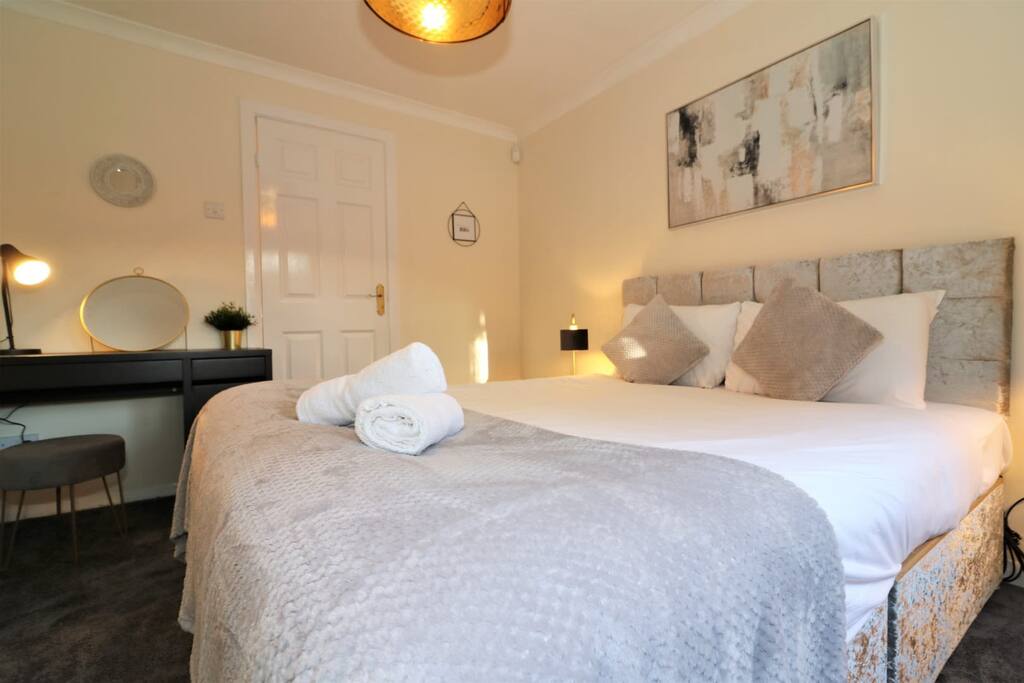 This 4-bedroom semi-detached home at Hardgate Pl in Glasgow is just the place for you if you're looking for comfort, convenience, and a fantastic location! You'll have all the space you need with 4 spacious bedrooms, including 2 king-size beds and 3 single beds, as well as a full bathroom and an en-suite. The living spaces are bright and airy, with a spacious living room, a cozy dining area, and a kitchen that's fully equipped with all the modern appliances you need. Parking won't be an issue, as there's a driveway right outside the house. And if you're looking to enjoy the beautiful Scottish weather, the large back garden is just perfect for outdoor recreation and relaxation. What really makes this property stand out is its location! You're in the heart of Glasgow, with shops, restaurants, and other amenities just a stone's throw away. If you want to explore the city, the nearby bus and train stations make it a breeze to get around. This is home is also near the Queen Elizabeth Hospital. In short, this home is perfect for families or groups of friends who want a home away from home that's comfortable, convenient, and in a fantastic location!