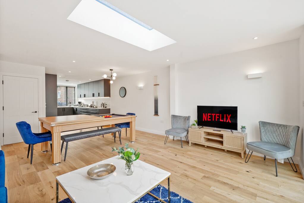 Deluxe 5-Bed House in London – Pool Table & Garden Experience comfort and convenience in this stylish 5-bedroom home, ideal for families, business stays, or group getaways. Property Highlights ✔ Sleeps up to 10 guests ✔ 5 Bedrooms: 3 doubles, 4 singles, 1 sofa bed ✔ Fully equipped kitchen & laundry facilities ✔ Spacious living area with large TV ✔ Free WiFi & parking ✔ Solid oak pool table & private garden ✔ 5 mins to West Norwood train station Long stays welcome – Discounts available!