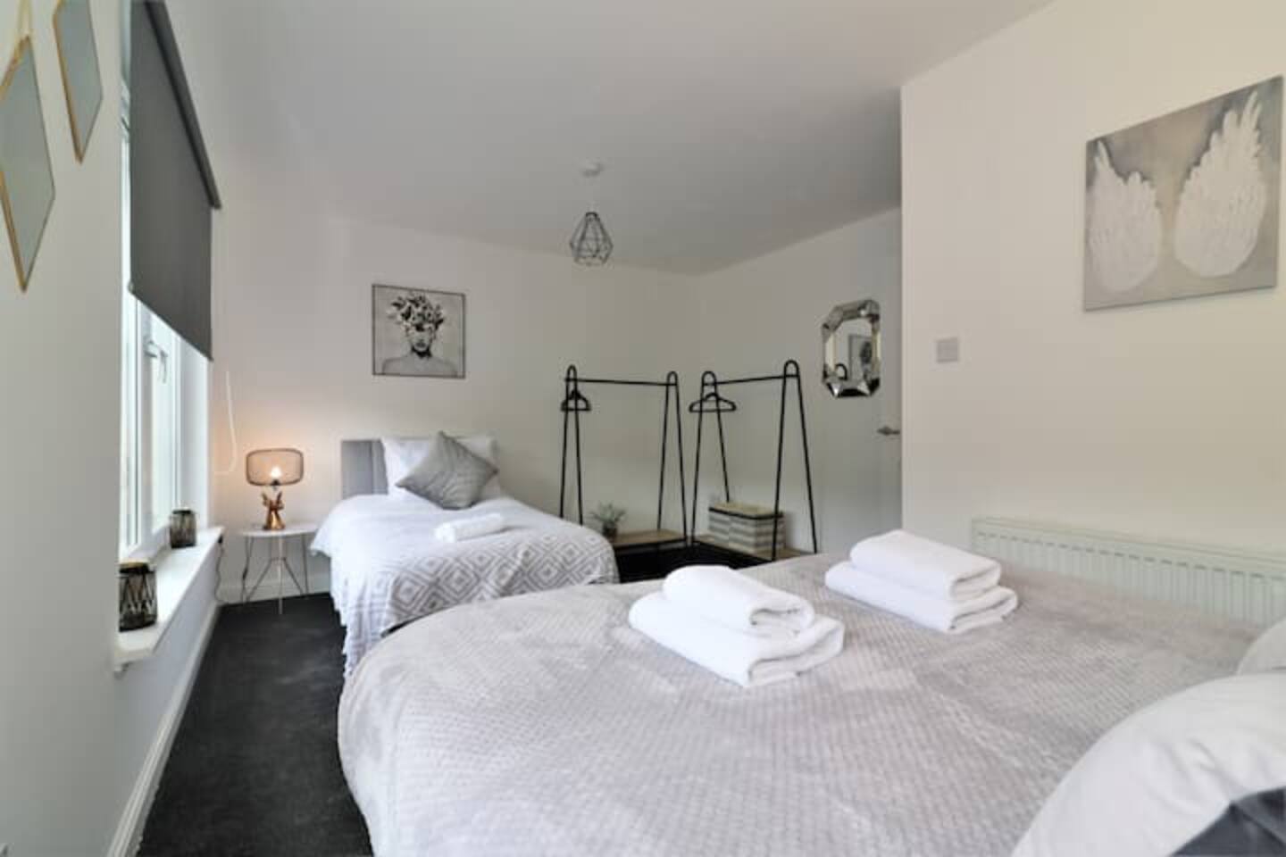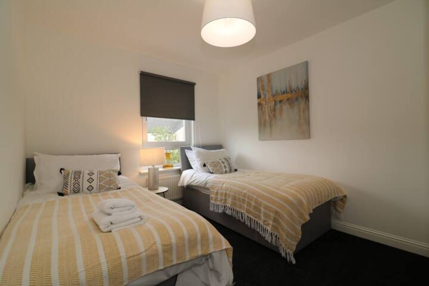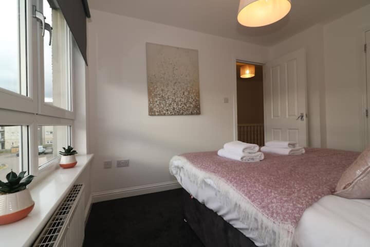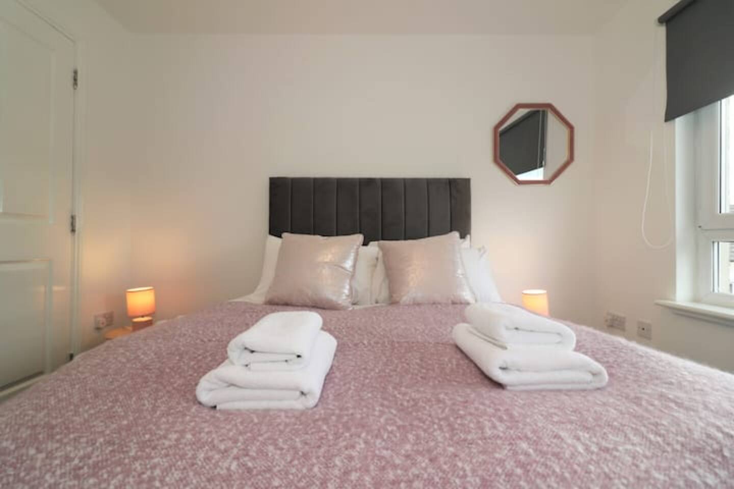 As mentioned above, the house is large and offers plenty of space. It's furnished and decorated carefully to provide our guests with the ultimate comfort while looking as aesthetic as ever. All appliances here are top notch as well. In total, the house can sleep up to 10 people. All 5 bedrooms carry a modern theme and all the beds here are so incredibly comfy, we’re sure you’ll be out like a light in no time! The living and dining room are conjoined and airy. During the day the living / dining is always brightly lit up with lots of natural sunlight and is overall, a great place to lounge, relax, and enjoy your meals. Adjacent to the living / dining is the kitchen, which is open plan and connected to the living / dining. It’s fully equipped and stocked with quality appliances. Some of these include a dishwasher and washing machine. The kitchen is capable of cooking up anything from some quick morning coffee to a 5 star Michelin meal – though the latter will likely require a lot more culinary skill! There's also a front and rear garden with a patio where we’ve provided outdoor furniture so you can head out and catch some natural air whenever you feel like it. The patio also doubles as a great spot to enjoy breakfast. All in all, this large & modern townhouse offers you: ✅Easy access to city center ✅Close to all sorts of attractions ✅Secure parking ✅5 beautiful bedrooms ✅Bright and spacious living / dining ✅Fully equipped kitchen ✅High speed wifi + smart TV You will have exclusive access to this entire apartment throughout your stay. Complimentary towels, shampoo, shower gel and soap are provided for our guests, as well as tea and coffee. If you require more information or any other service, please ask and we will be more than happy to accommodate. PLEASE NOTE: Also, I do NOT accept bookings from local people who reside in Glasgow or nearby places. If you are in doubt, please ask me first and state the reason for your stay. Your ID will be checked on the day of arrival where you will be refused check-in and may not be refunded for your stay. Thank you for your understanding.