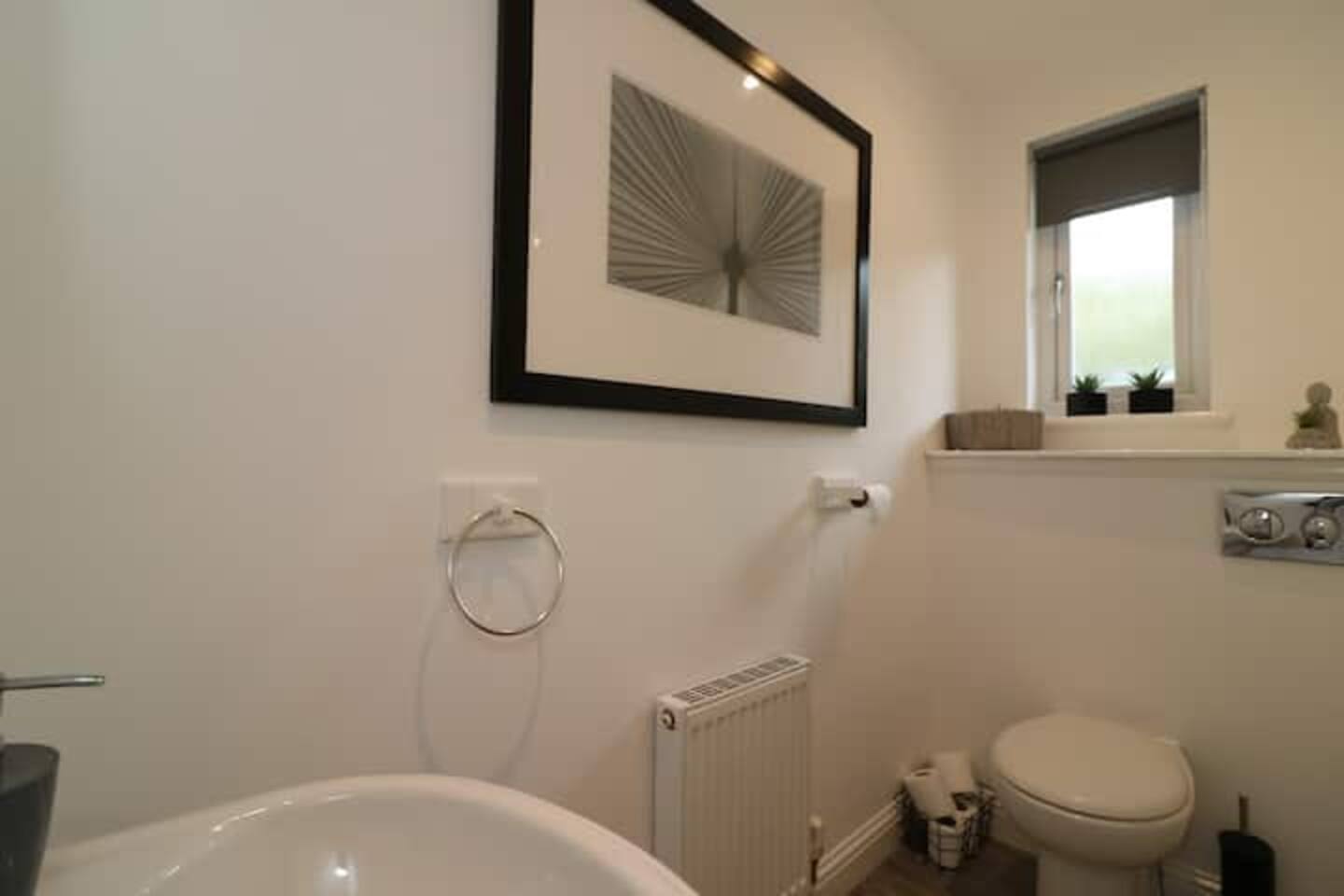 Experience all the wonders that Glasgow has to offer at this large & modern five bedroom townhouse offering everything you can ask for. The house is three levels and very spacious. Located in the East End of Glasgow, you’ll be close to the city center and minutes away from all sorts of restaurants, bars, parks, sports venues, shopping centers, supermarkets and loads of other attractions & necessities. No worries though, despite being so close to the hustle & bustle of the city, there are still lots of greenery and natural walkways in nearby Glasgow Green. Sandyhills Golf Club isn’t too far either, so if you're a golfer, a stay here is your paradise! There is a private driveway at the back of the property, and tons of free residential parking so looking around for parking spots won’t ever be a headache during your stay.